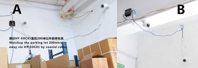 图A为成品仓E4扩展监控点,共有三台像机,其中两台监控仓库,第三台通过恒研同轴线网络延长器HY-EOC01连接200米外的停车场。图B为我们的包装材料仓,有两个监控点。通过扩展我们成功的实现了用一台24路POE交换机组建27路监控网络的目的,节约了成本。 在当前各项成本不断攀升的情况下,合理有效的利用HY-E4-POE对主交换机的接入能力可以有效的利用现有投资,节约成本,为广大客户增强投标竞争力,提升项目利润。 | |||||||||