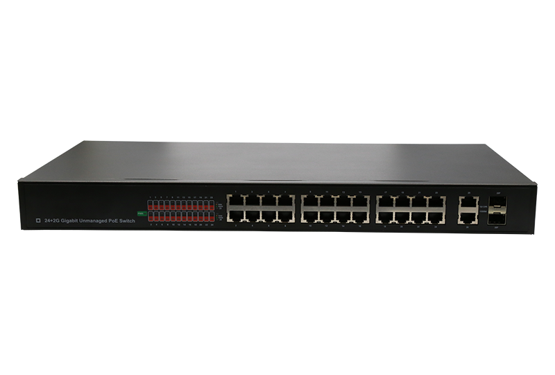 HY- 1228G-POE是厦门恒研电子专为满足4K IP监控网络的PoE供电需求而自主研发设计的千兆上联非网管PoE交换机,具有24个百兆RJ45端口、2个千兆RJ45端口及2个复用的SFP光纤模 块扩展插槽。其中24个百兆RJ45端口全部支持PoE供电,最大供电功率达260W。非网管型交换机安装简单,即插即用,适合酒店、校园、厂区宿舍及中 小型企业组建经济高效的网络。 优异的PoE供电性能PoE特性符合IEEE 802.3at及IEEE 802.3af标准,自动检测与识别符合IEEE 802.3at及IEEE 802.3af标准的设备并为其供电;24个百兆RJ45端口均具备PoE供电能力,每端口最大供电功率达30W;整机最大供电功率达260W; 灵活的扩展能力提供2个10/100/1000M RJ45,满足向千兆网络的无缝过渡,同时提供2个千兆SFP(mini GBIC)光纤模块扩展插槽,搭配使用SFP光纤模块即可方便连接至光纤骨干网络,大大扩展设备适用范围,节省用户投资。 |