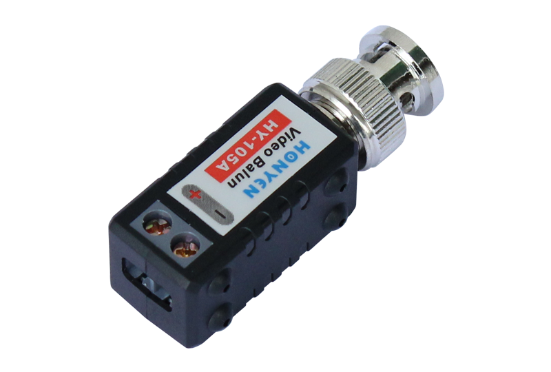 HY-105Ais our second connectable design single channel passive video balun. With this function you can have the baluns connected one after another behind the DVR to make your rack tidy and professional. Another high light of it is that it use a high quality copper BNC and wish built-in ESD. They'll not only promise a smooth transmission but also protect your high valued equipment.